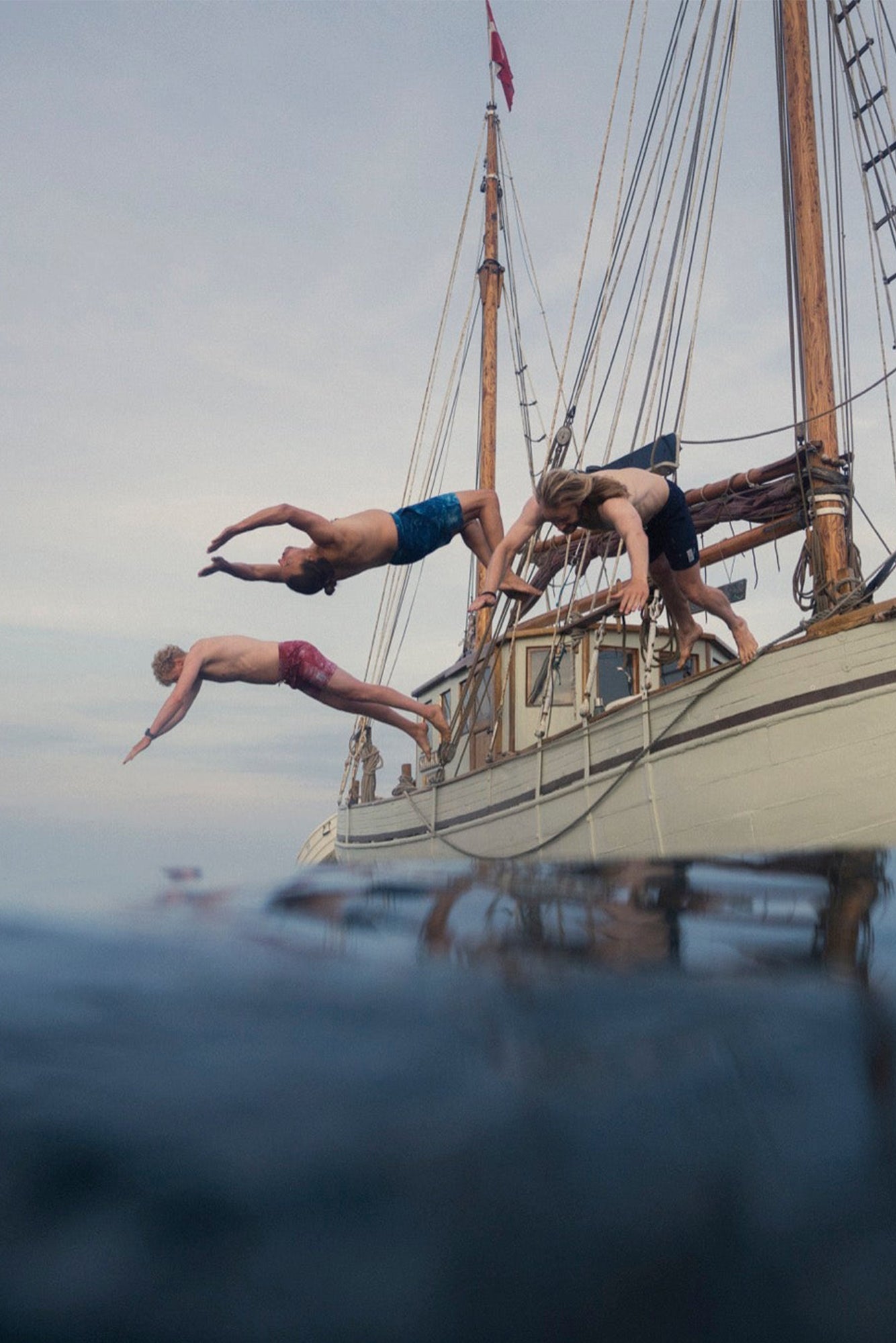 Disse strækbare badeshorts giver dig bevægelsesfrihed til at lave hidtil usete maveplaskere fra tremetervippen.