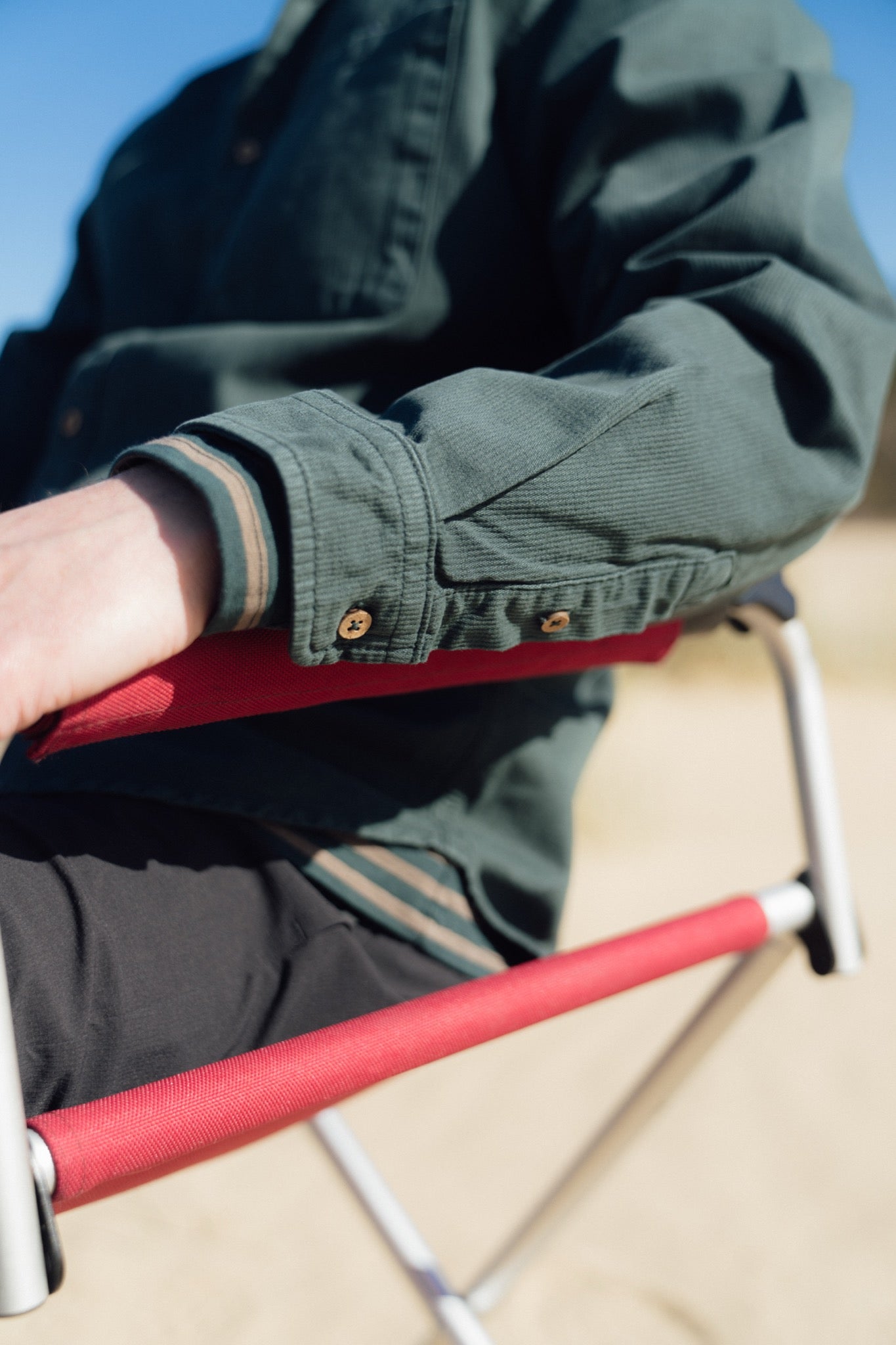 Skjorten er lavet i en tung og robust kvalitet, der kan holde til alle slags eventyr – store som små. Stoffets rå tekstur giver den en autentisk aura, mens den klassiske button-down krave holder stilen skarp.