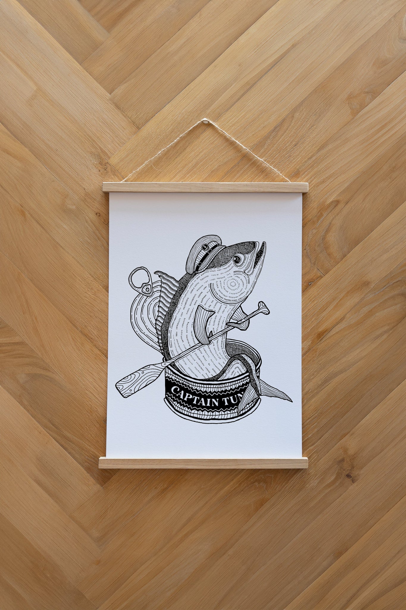 Denne tunfisk har taget styringen over sin egen skæbne, og den dåse, som skulle have været hans endeligt, er nu blevet hans redning. I et forsøg på at undslippe et japansk fiskefartøj har han derfor valgt at flygte til søs med det ræsonnement, at det sidste sted, et fiskefartøj vil lede efter tunfisk, er over havets overflade. Hvem sagde, at en fisk ikke kan lege dåseskjul!?