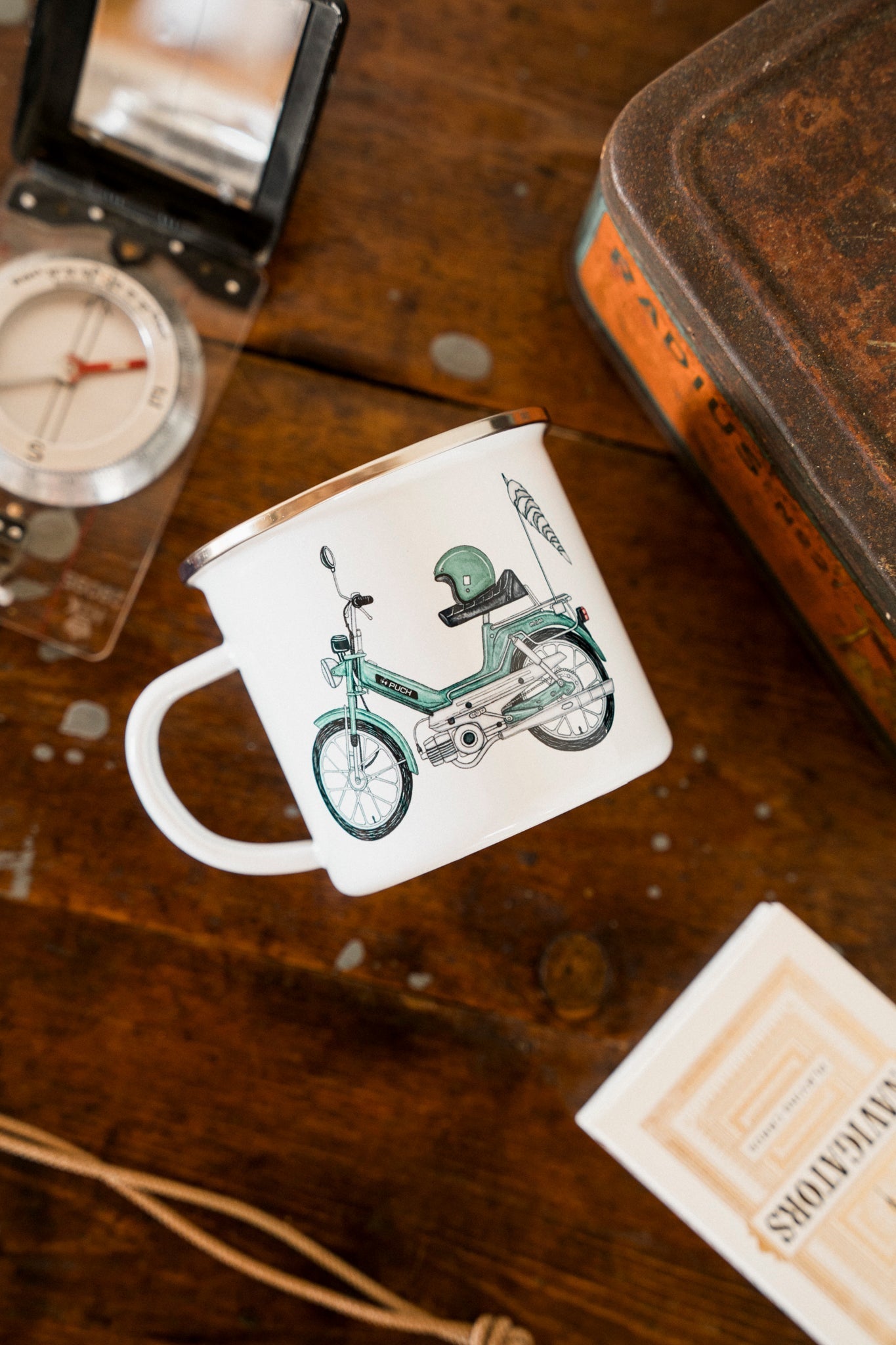 Dette design portrætterer piedestalen af den menneskelige formåen og er kulminationen på den industrielle revolution: Den grønne Puch Maxi Sport…med rævehale!