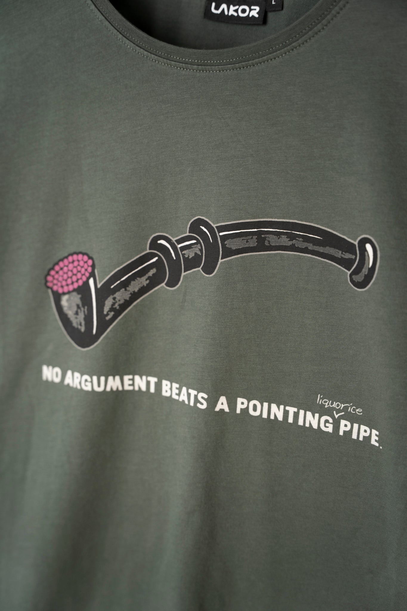 Her er piben, som oser af barndomsnostalgi. Det eneste stykke slik, som kan få danskerne op på lakridserne, når nogen truer med at tage det fra os. Denne T-shirt er en særudgave og derfor din mulighed for at forsøde tilværelsen med et lækkert stykke tøj...No argument beats a pointing liquorice pipe.