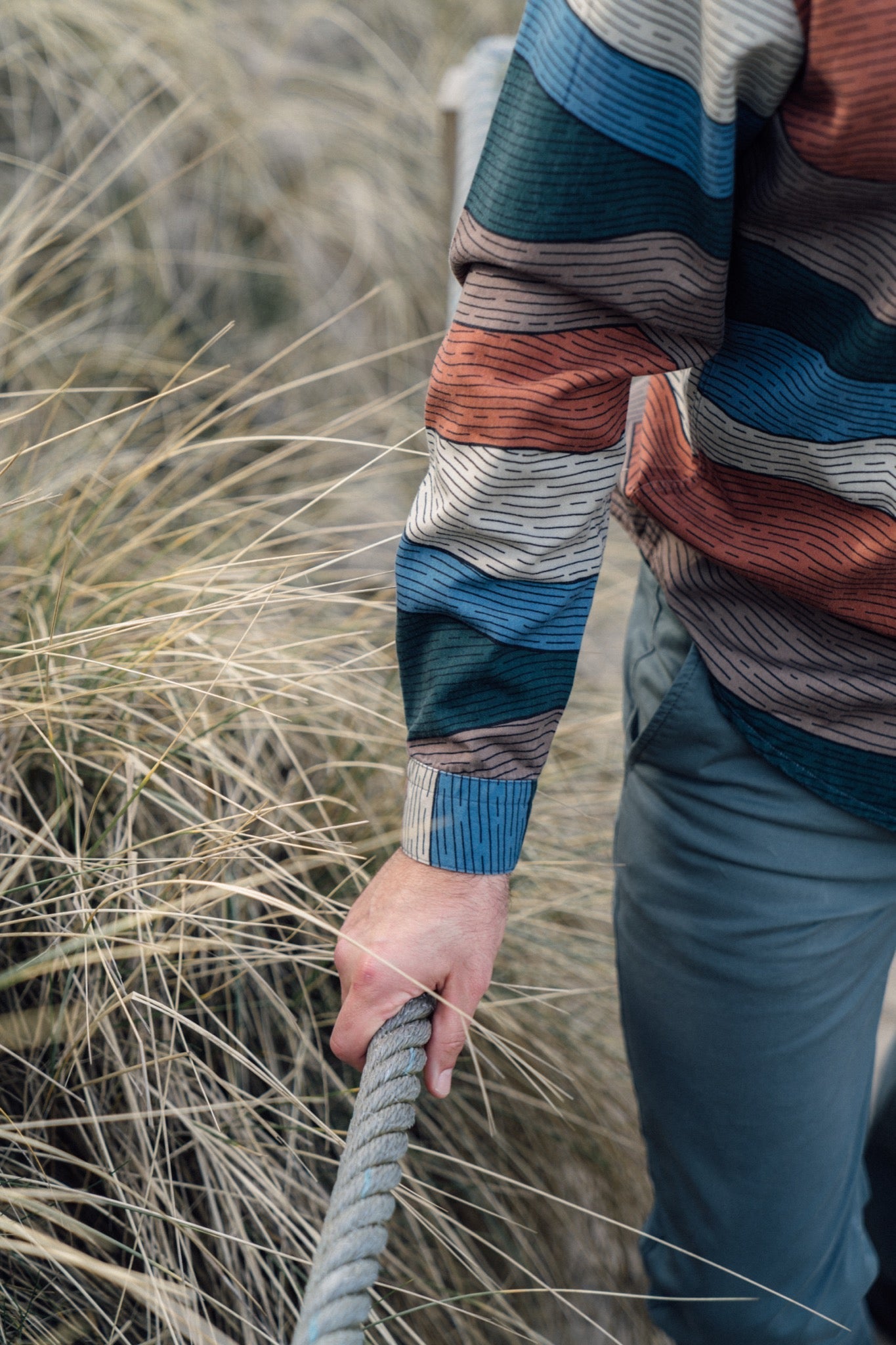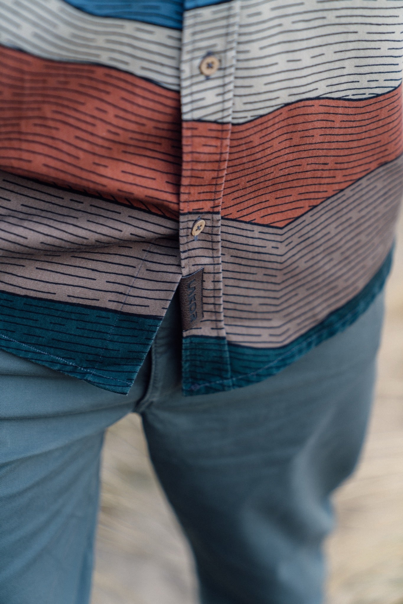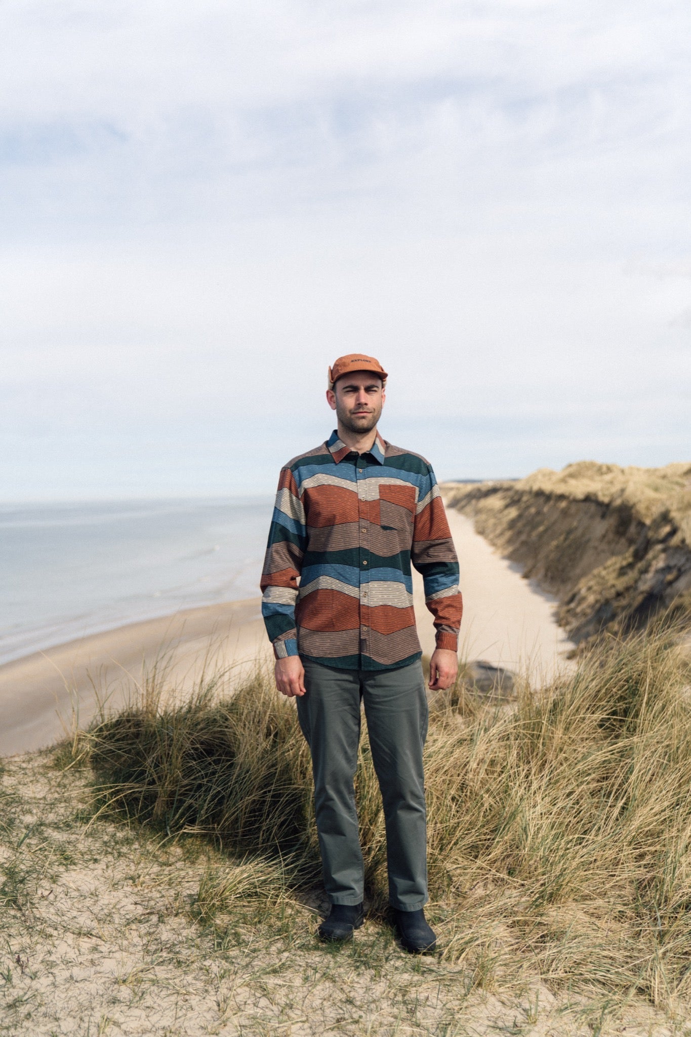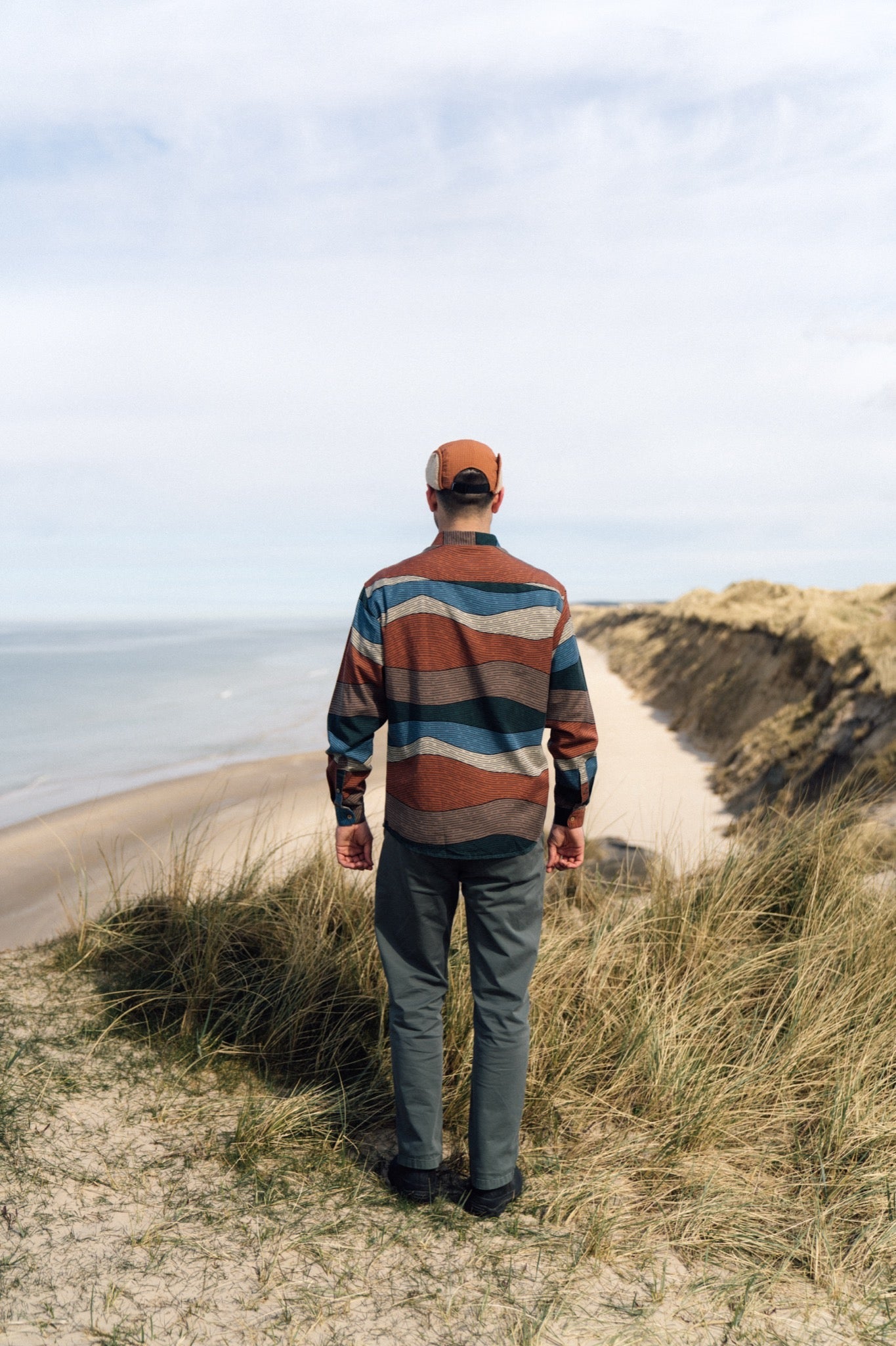 Denne skjorte lader fantasien vandre gennem snoede stier, ind mellem skovens stammer, langs åløb og helt op på bjergets top. Mønstret er inspireret af Jyllands storslåede stolthed, Himmelbjerget og de organiske linjer i udsigten derfra.