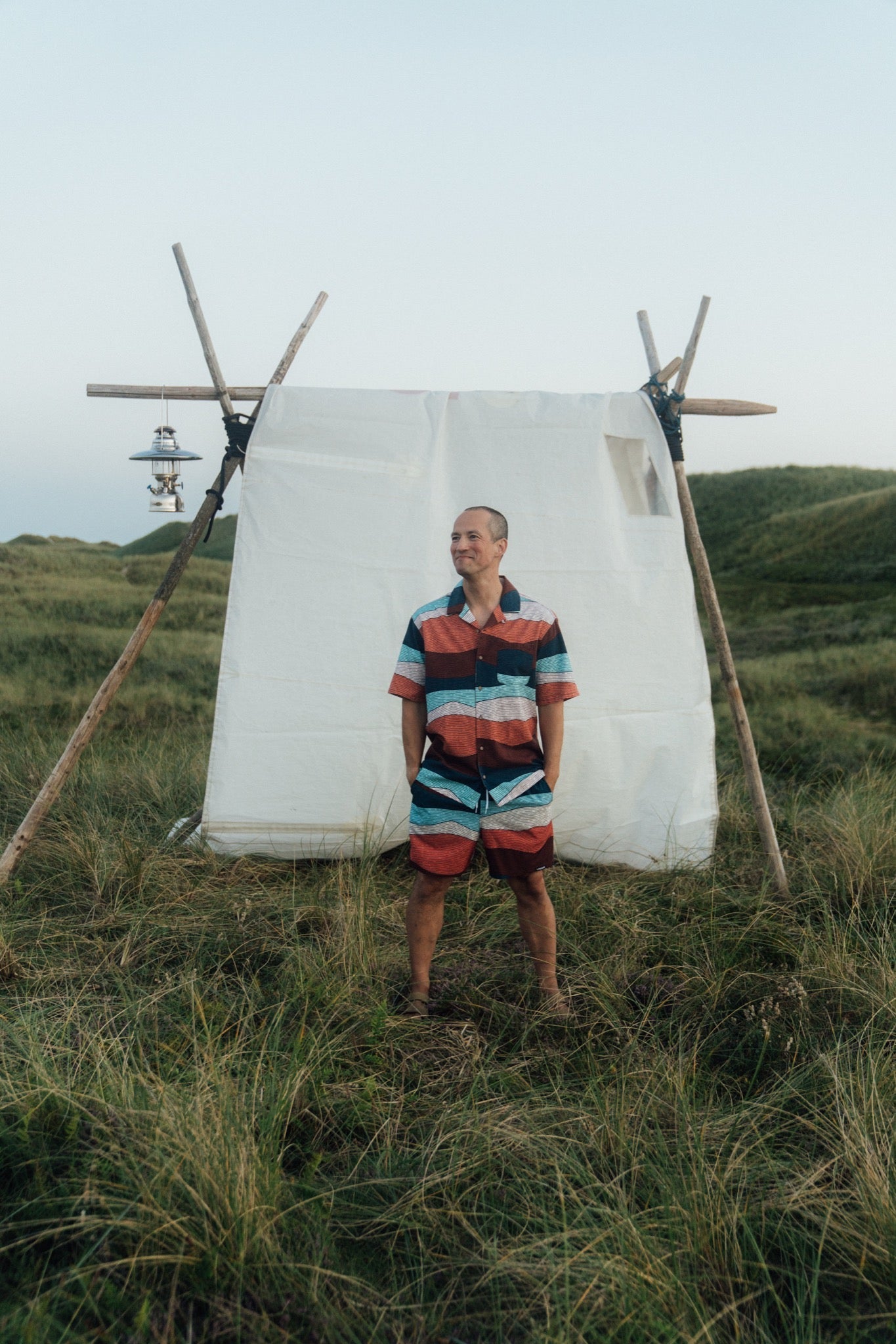 Denne skjortes mønster og farvepalette er inspireret af smukke sommeraftener ved de danske strande. Så uanset hvor dine uventede eventyr fører dig hen, håber vi, at du vil mærke sommerbrise og indvendigt solskin, når du ifører dig vores Sunwaves Shirt.